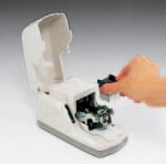 AUFKLAPPBARES GEHÄUSE Die elektrisch gesicherte Gehäuseabdeckung kann zum Austausch des Magazins geöffnet werden.