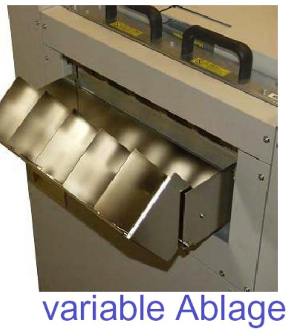 Die gewünschten Endformate werden einfach per Tastendruck ausgewählt, d.h. bis zu 500 Blatt (a. 0,12mm) einlegen, Formattaste drücken und los geht's.