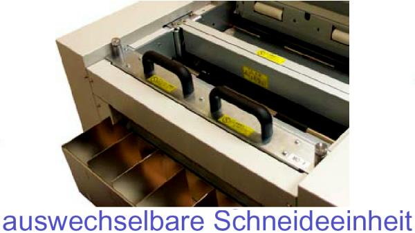 Die Schneideeinheiten sind extrem langlebig und lassen sich bei Bedarf, z.B. Formatwechsel in sekundenschnelle auswechseln.