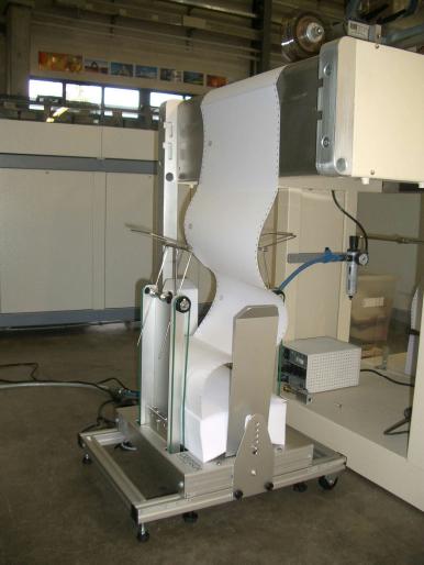 Der Rückfalzer garantiert ein sauberes, präzises Ablegen der gedruckten Blätter. Es können 2500 - 3000 Blätter zu einem Stoss verarbeitet werden. Die Geschwindigkeit beträgt ca. 2 Blatt pro Sekunde. Die Maschine verarbeitet verschiedene Formate, sowie in der Länge, als auch in der Breite.