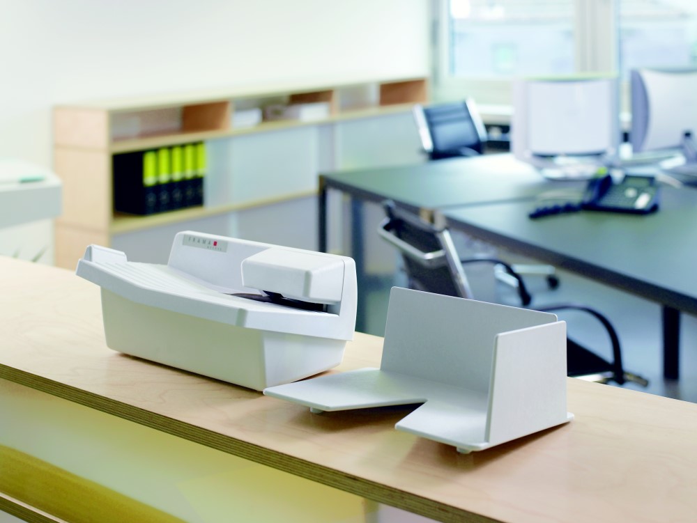 - Auflagetisch mit automatischer, selbstausrichtender Zuführung für Postgut bis zu B4 - Formate