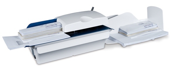 - Großer Auflagetisch mit automatischer, selbstausrichtender Zuführung für Post bis zu C4-Format