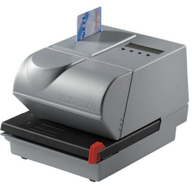 Kompakter Elektrostempel in modernem Design. Die einfache Bedienung, die vielfältigen Druckmöglichkeiten optimieren Ihre Arbeitsabläufe in allen Bereichen, in denen Zeit, Datum und Nummer zu stempeln sind.