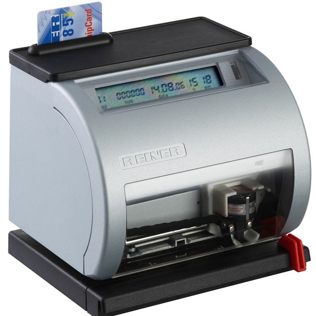Modernes Design mit hoher Funktionalität. Druckt Nummer, Datum und Uhrzeit. Die große Textplatte ermöglicht den Abdruck von Logo, Signatur, Siegel. Sicherheit durch Chipkarte und Passwortschutz.