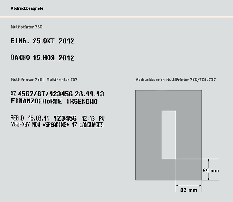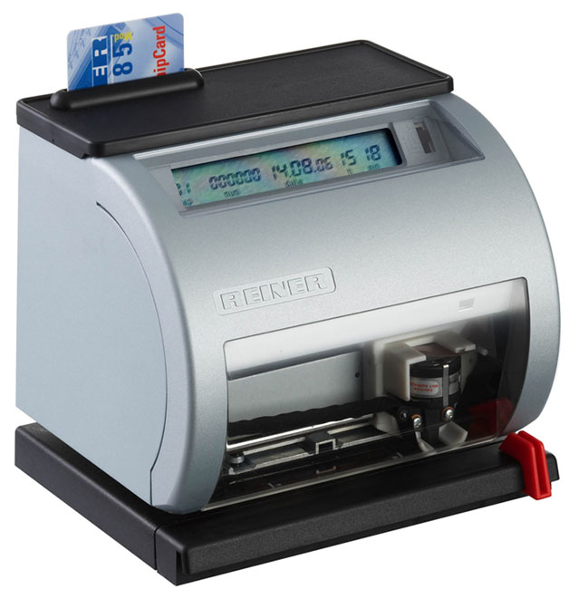 - Wie Modell 785, mit Chipkarte und halbautomatischem zweizeiligem Abdruck.