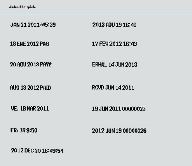 - Stempelt vielfältige Varianten von Zeit, Datum, Nummer und Text